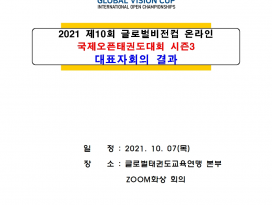 | 83 | ![]() | 2021 Global Vision Cup Grand Frix Final Competition Reference Video 경연부분 스피드발차기 시범영상 | 대회조직위원회 | 9066 | 2021년 11월 8일 |
